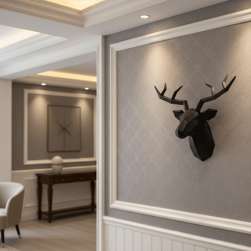 Experience the majesty of nature in your home with The Bold Stag. This minimalistic deer head with geometric edges adds a touch of intrigue to any wall.