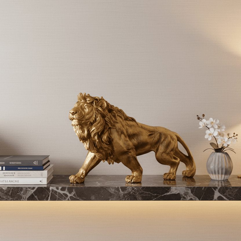 King of the Jungle! Take the leap and add this Resin lion statues to your collection! This striking gold lion, crafted from high-quality resin, exudes elegance and fierce sophistication.