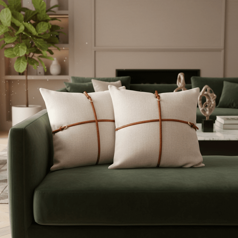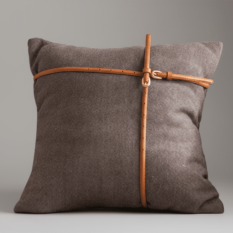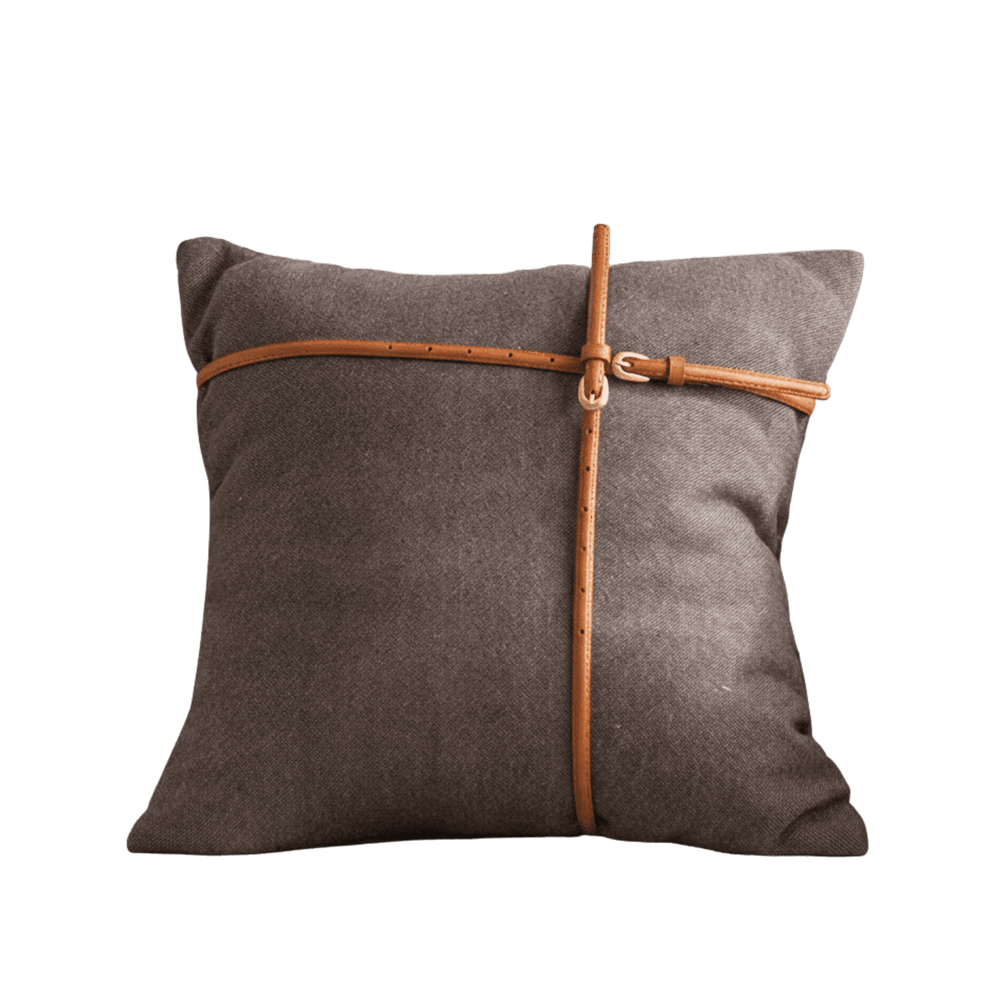 Experience unparalleled sophistication with The Signature Leather Belt Pillow Cover. Made with modern elegance in mind, these exquisite leather decorative pillows features a faux brown leather belt for a touch of luxury. Elevate your home decor with this tasteful and exclusive piece.