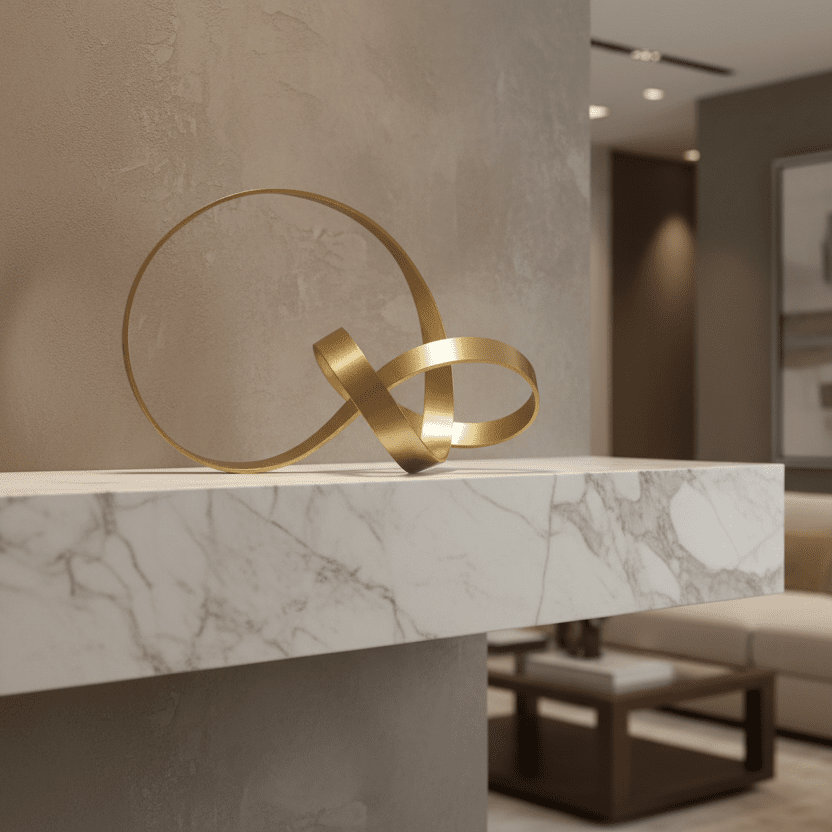 This stunning metal knot figurine exudes elegance and charm. Add a touch of modern sophistication to any room or place as entryway home decor with this unique and eye-catching piece.