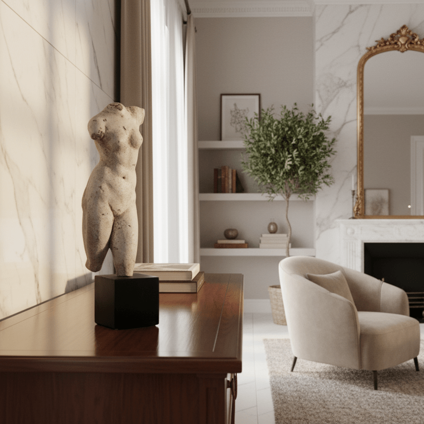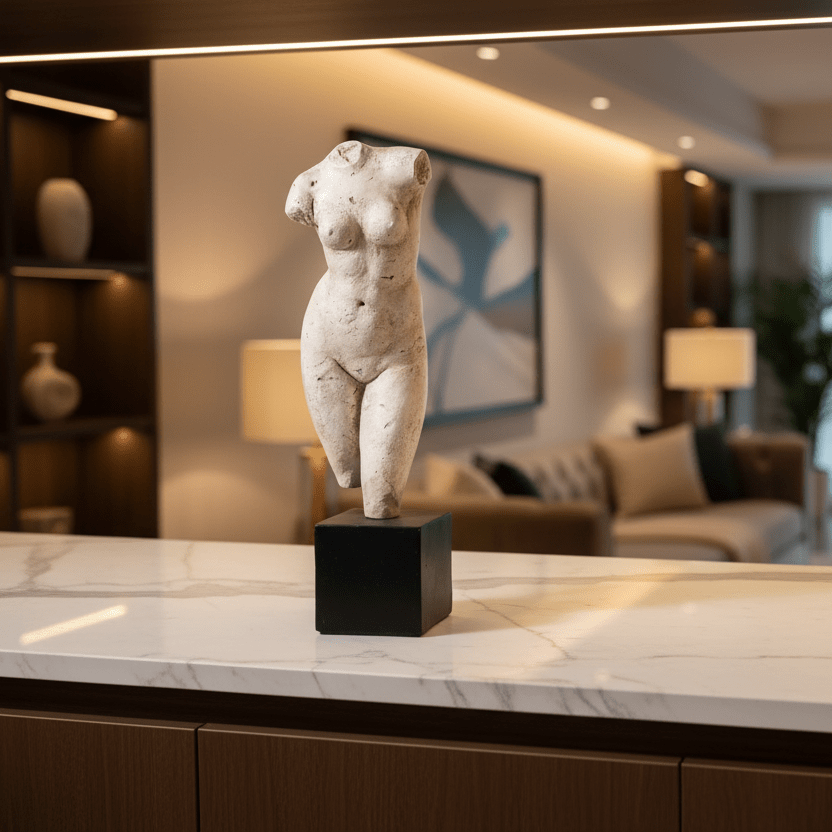 A modern twist on classic sculpture, this abstract female torso celebrates form and femininity. The design plays with contrast, balance, and a little artistic mystery.