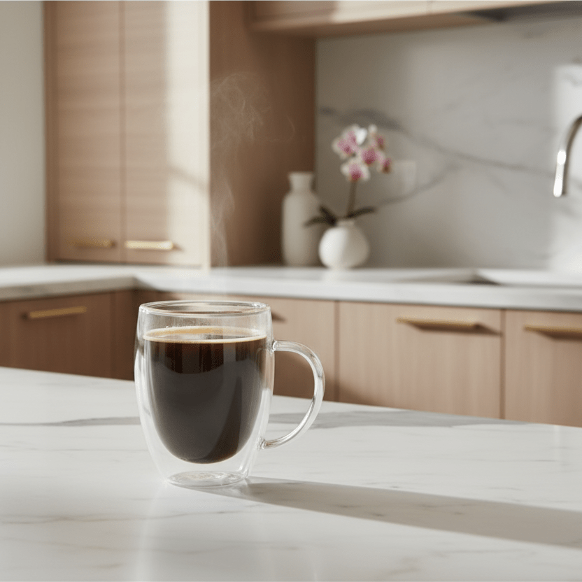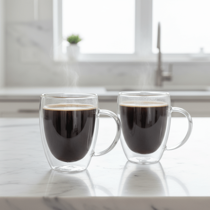 Enjoy every sip at the perfect temperature with this sleek double wall glass mug. Designed to keep your beverages hot or cold for longer, its insulated construction prevents heat transfer. The clear, modern design beautifully showcases your coffee, tea, or any favorite drink.