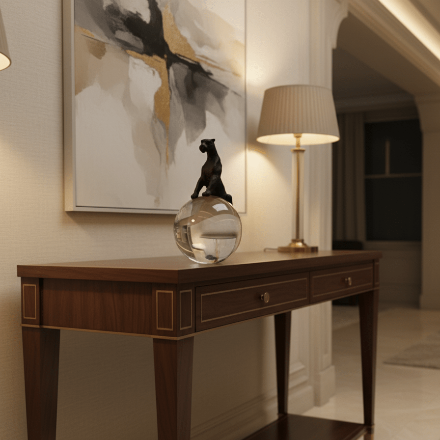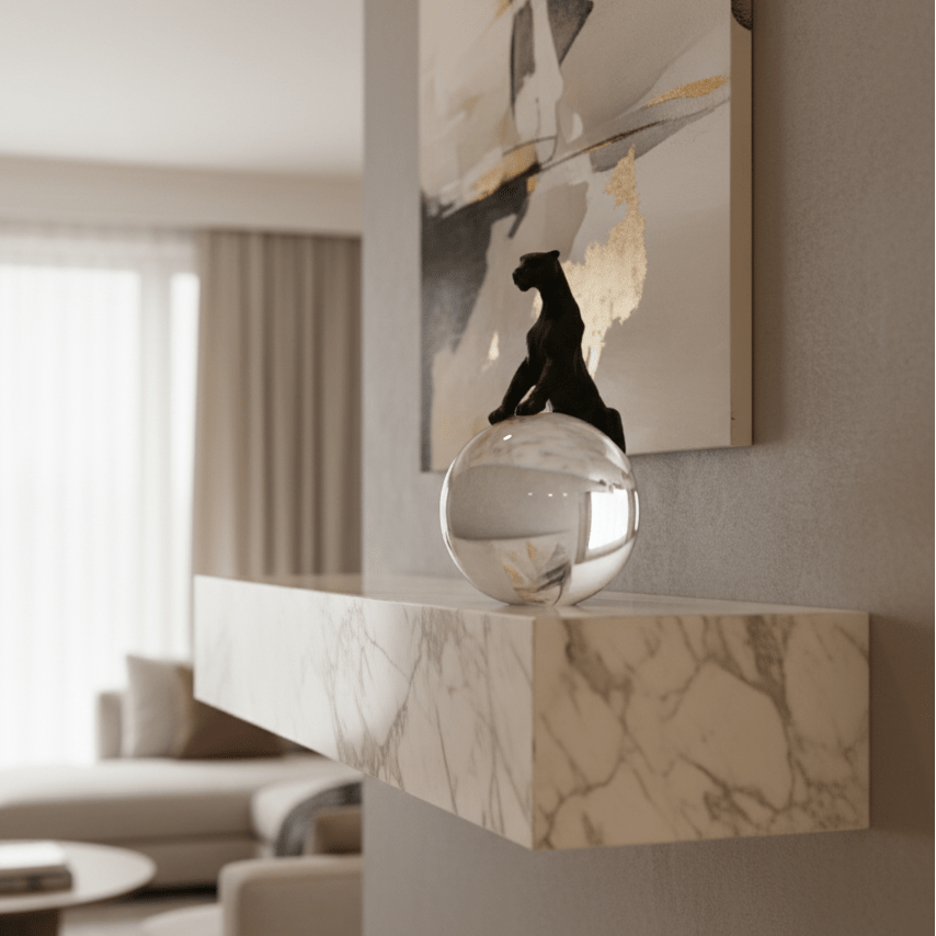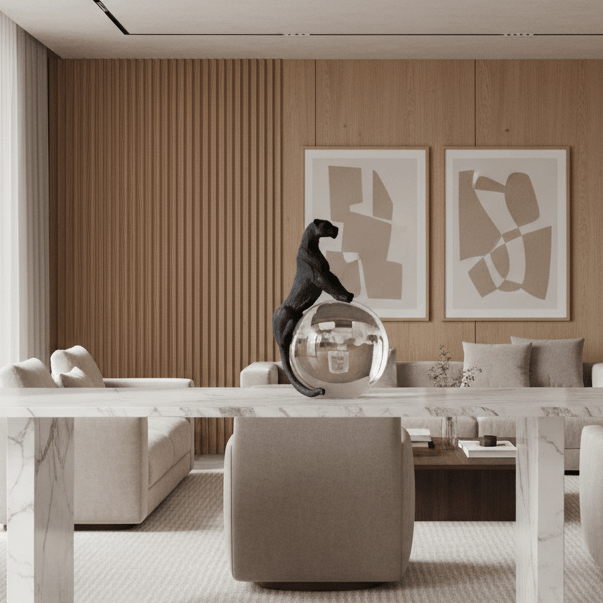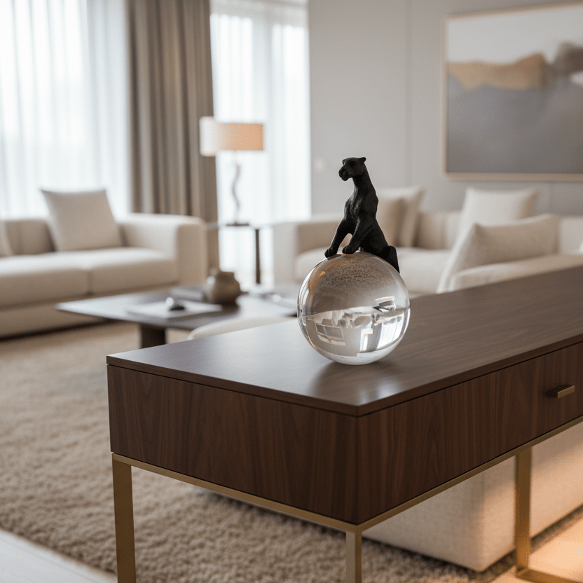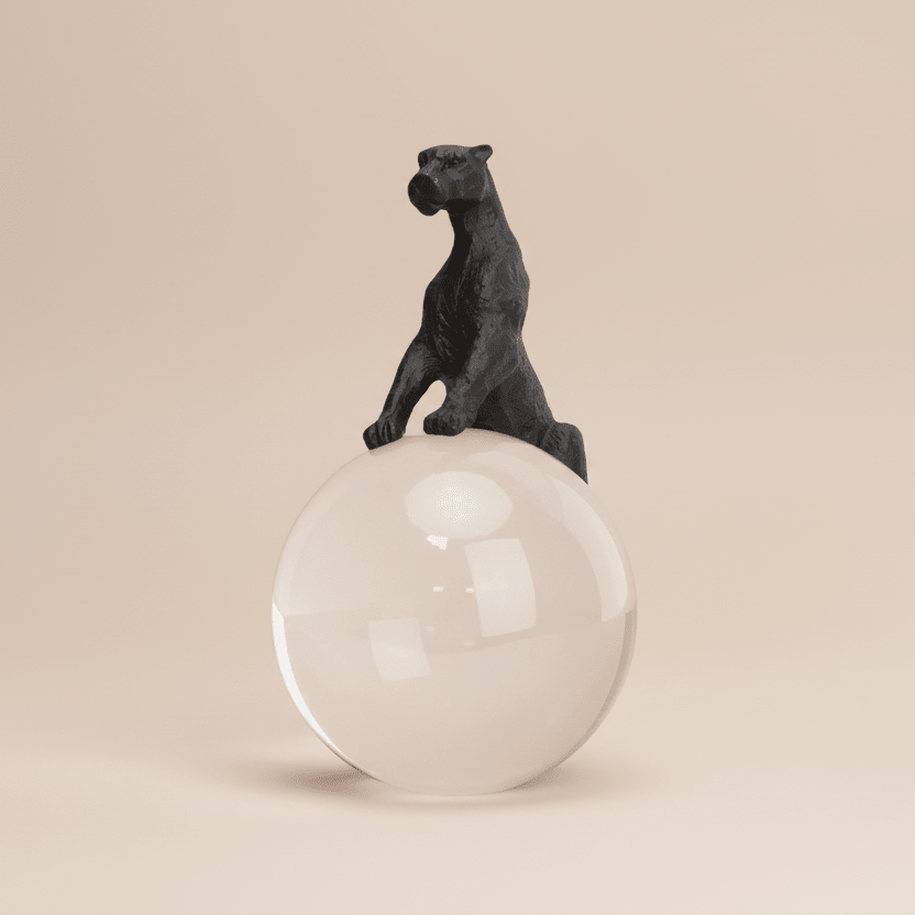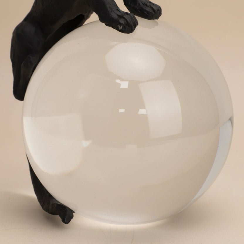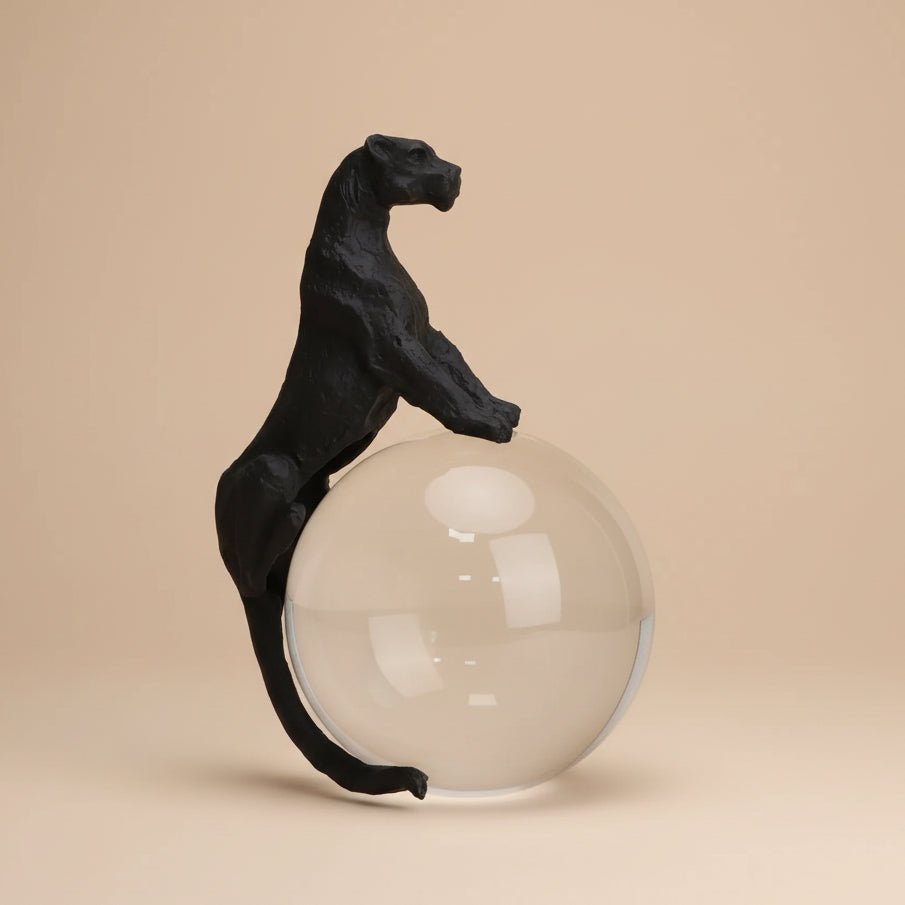 sleek black panther poised atop a clear crystal sphere, blending strength, mystery, and modern elegance into a striking decorative statement.