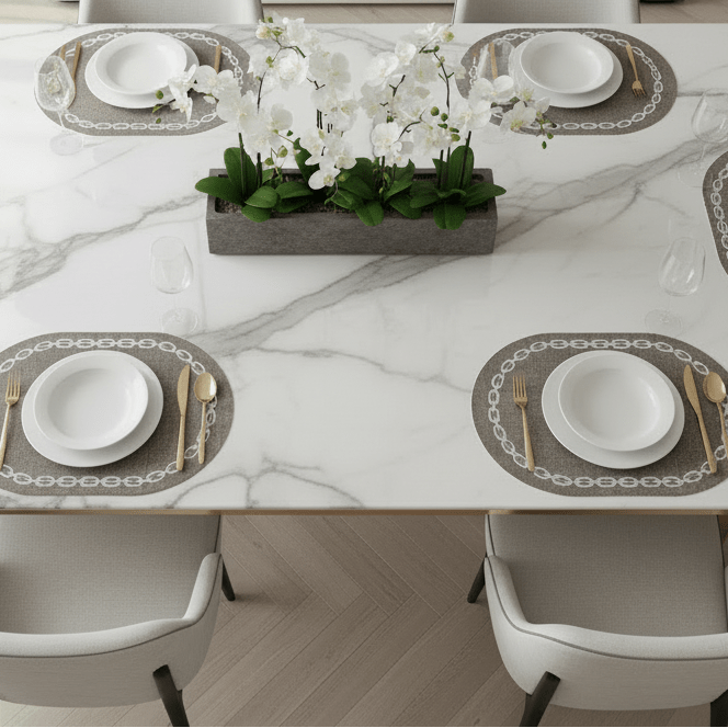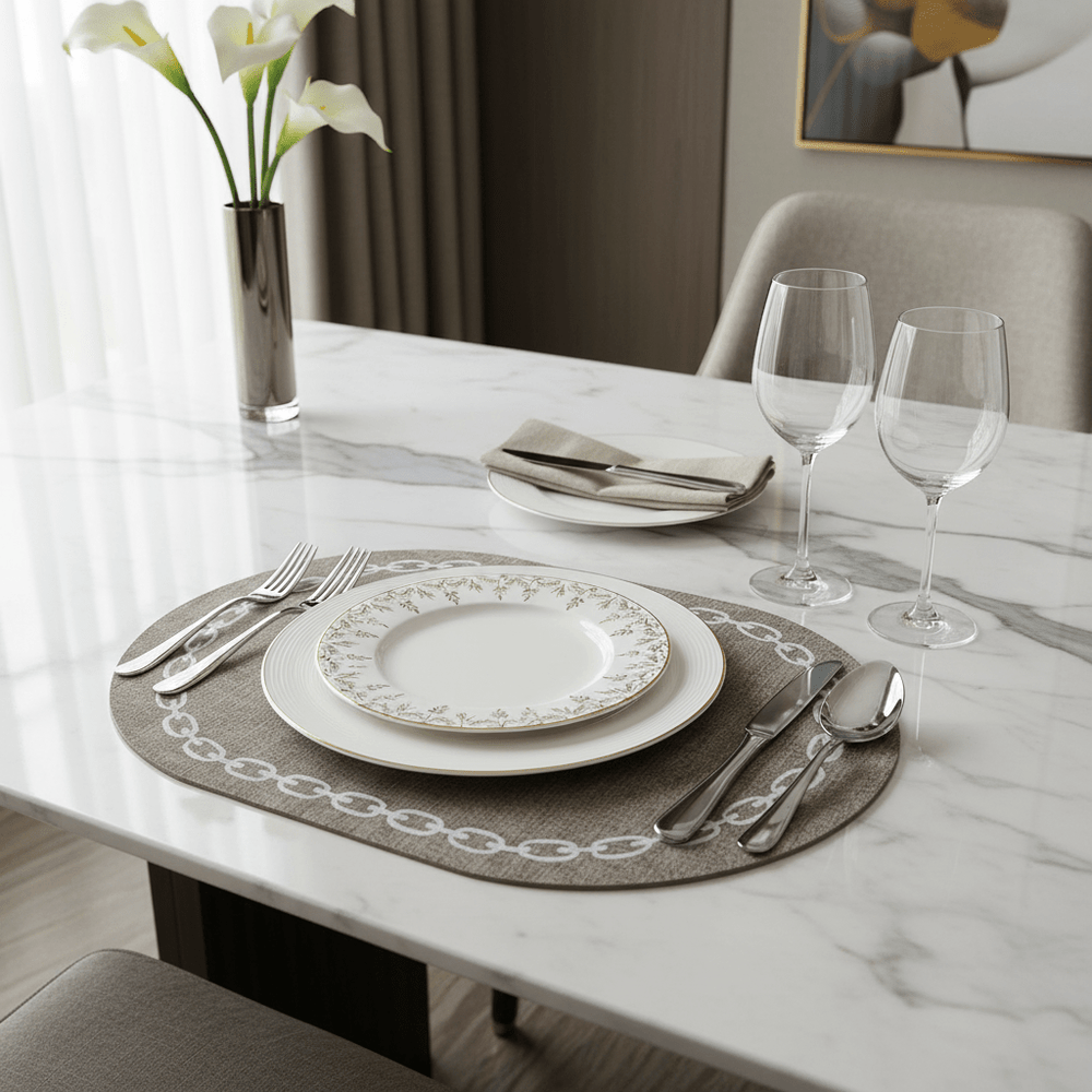 Elevate every meal with our Marquess Grain Faux Leather Placemats — where fine dining meets fine design. Smooth, durable, and effortlessly refined, they turn casual dinners into classy affairs.