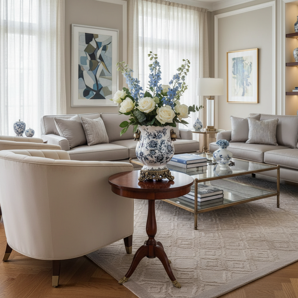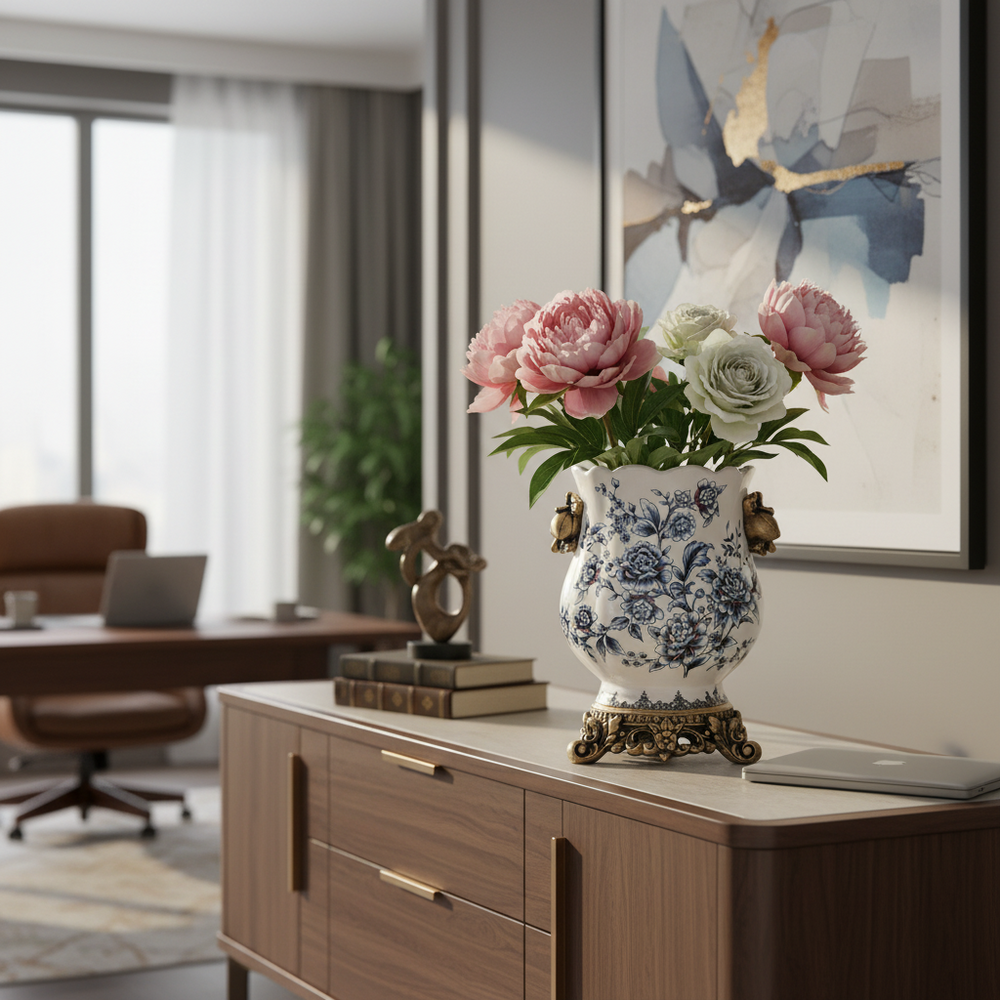 A refined fusion of artistry and timeless elegance, this ceramic porcelain vase brings a sense of classical beauty to any space. Ideal for coffee tables, consoles, shelves, or dining centerpieces, it adds a graceful decorative touch that complements both traditional and modern interiors.