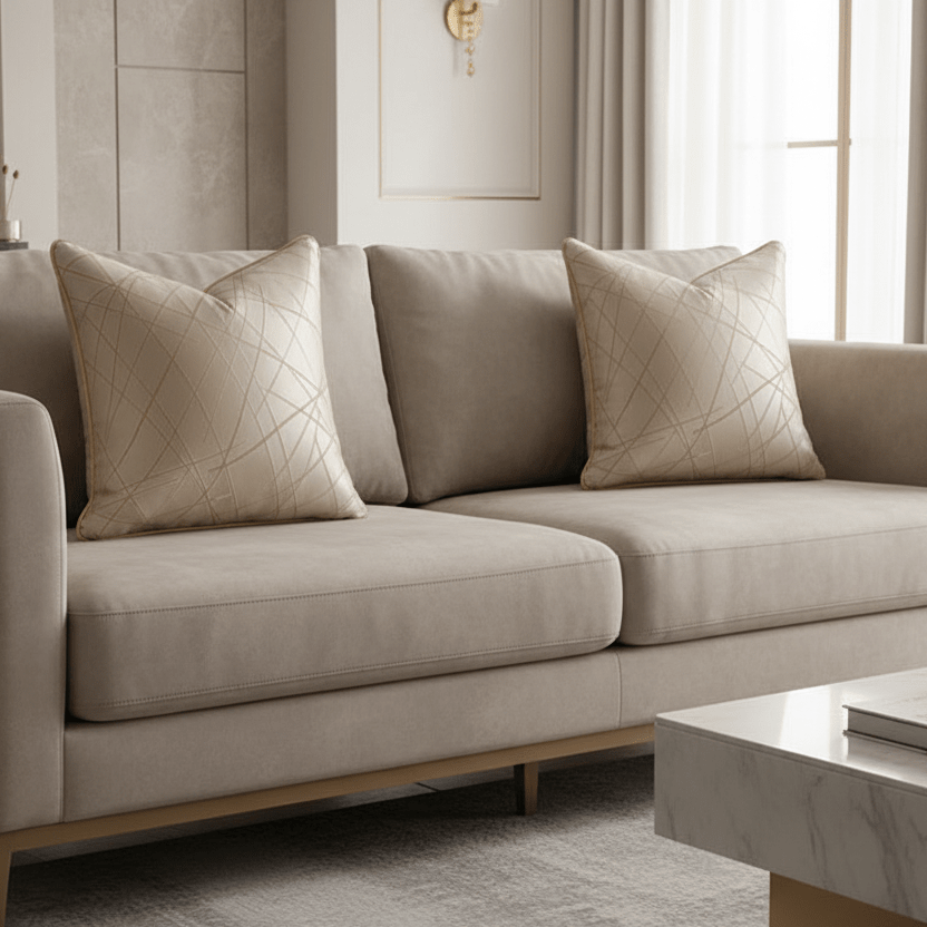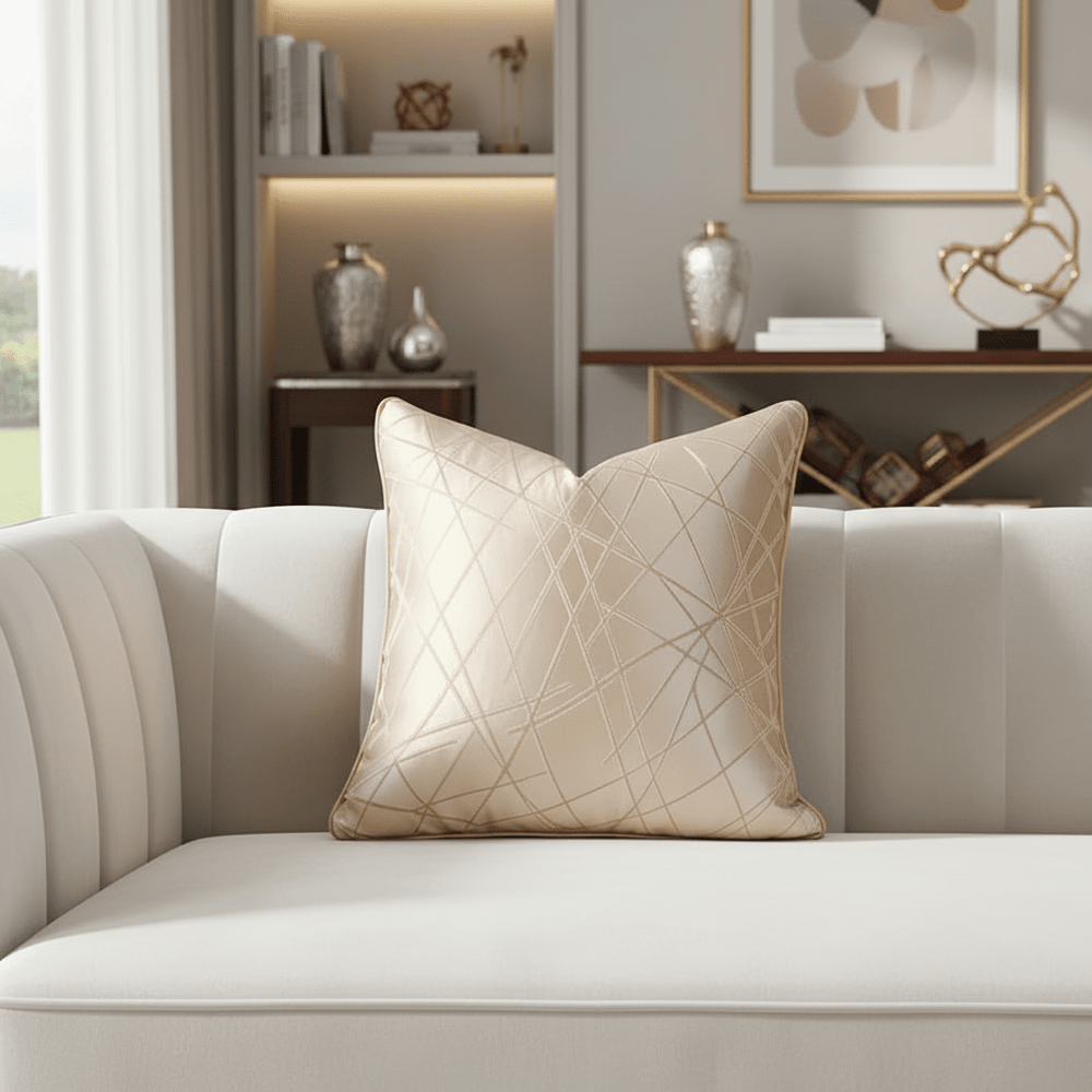 Add a touch of glamour to your home with this delightful pillow cover. Wrapped in a warm golden beige with a subtle shimmer, it catches light in all the right ways. Whether you're styling a bedroom, living room, or cozy corner, this cover brings both elegance and fun.