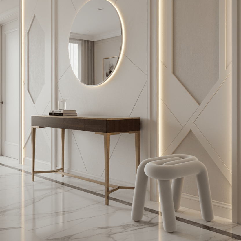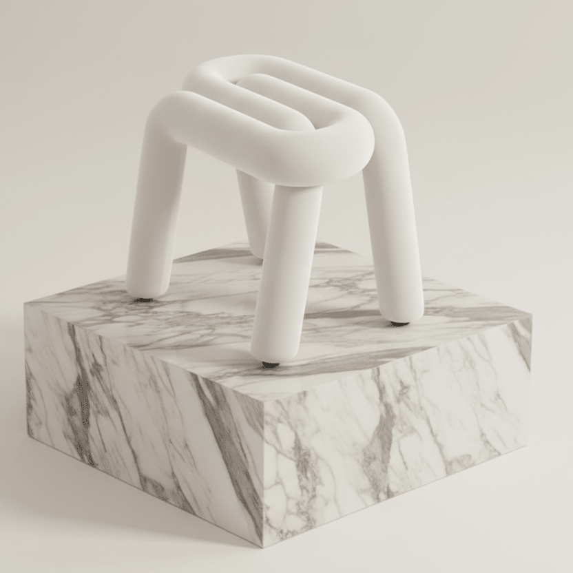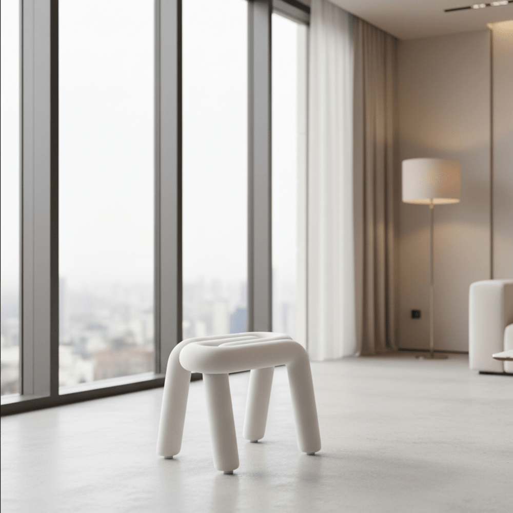 Meet the stool that steals the spotlight: A sculptural piece featuring an interwoven carbon steel frame design that commands attention in any room. The thick-pipe silhouette creates visual interest while the soft velvet upholstery provides comfort and softness.
