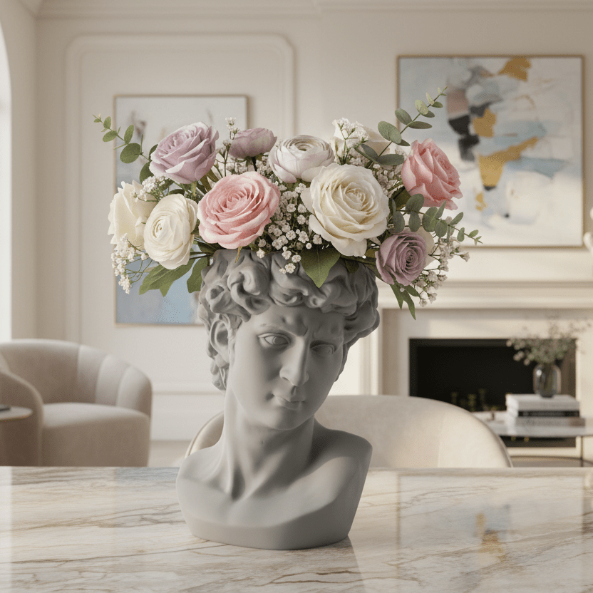 Who says vases have to be boring? This cheeky ceramic creation gives David's legendary head a second life as your home's most charming flower display. This versatile masterpiece proves that functional décor can be both intellectually engaging and genuinely delightful.