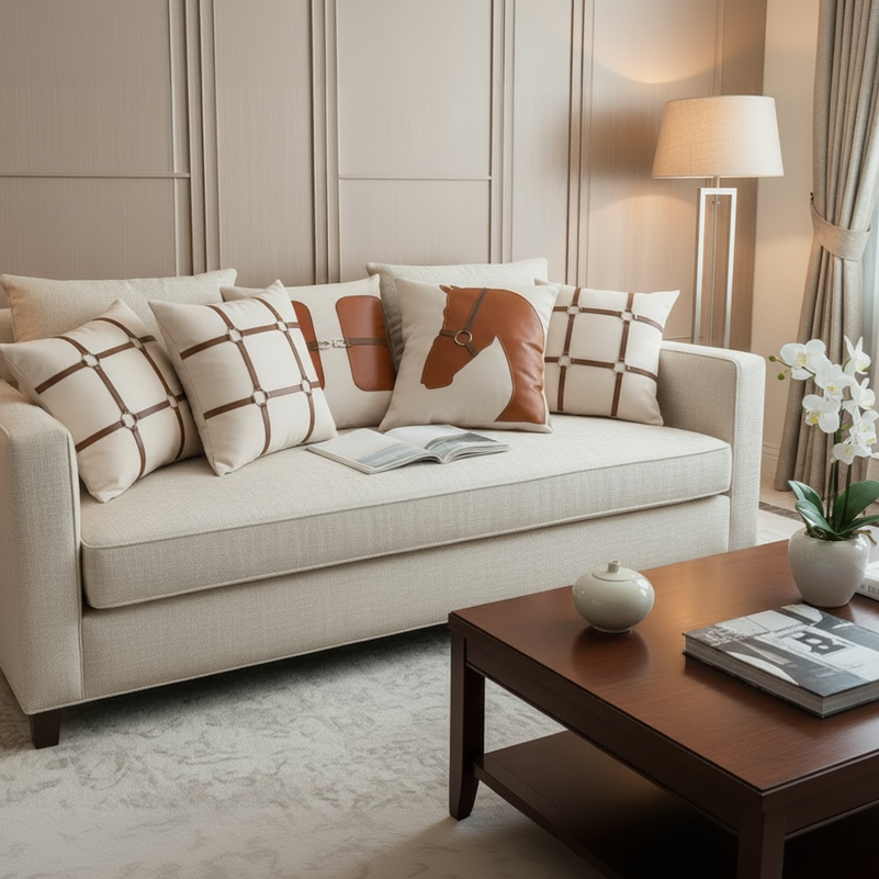 Confeccionada con cuero de alta calidad y con un sofisticado diseño de hebilla de caballo, esta funda de 45 cm x 45 cm es la combinación perfecta de elegancia y estilo.
