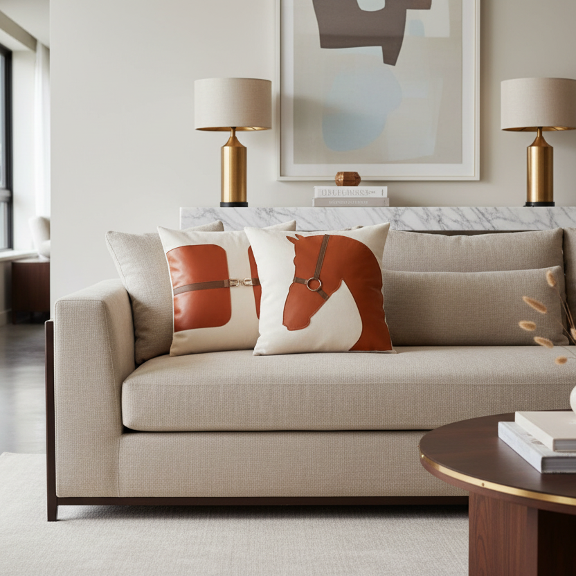Transforme su espacio vital en un lujoso oasis ecuestre con nuestra funda de almohada para caballos con hebillas de cuero.