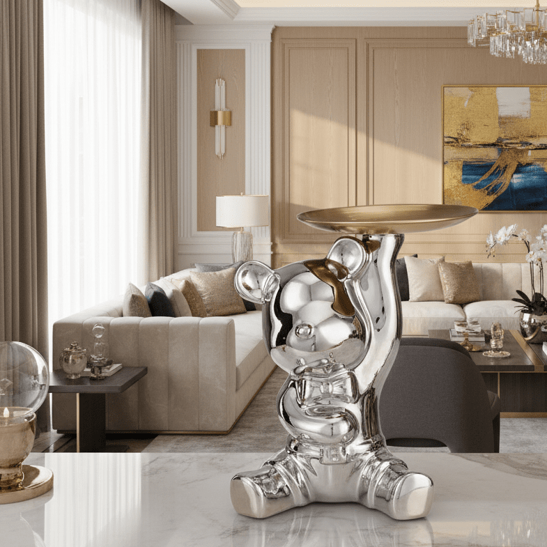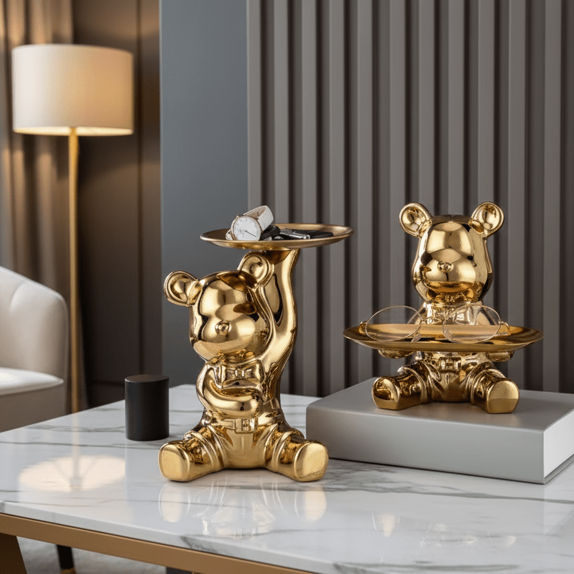 The perfect addition to your home decor! Made of ceramic and equipped with a stainless steel tray, this key holder features a unique bear design that adds a touch of edgy style to your space.