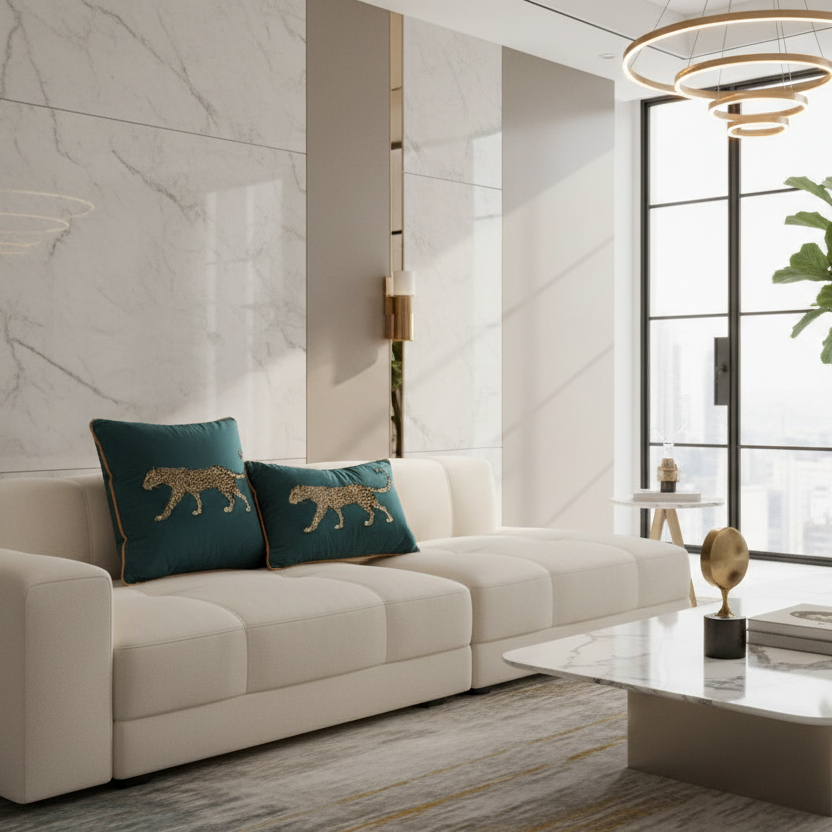 Feline Majesty Embroidered Pillow Cover