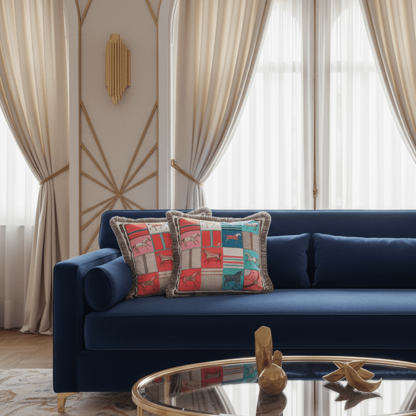 Crafted from luxurious velvet, this pillow cover offers a soft, elegant touch with rich, vibrant colors. Featuring a refined equestrian-inspired design and finished with stylish fringe along the edges, it adds a sophisticated flair to any space. Perfect for bringing both comfort and character to your home decor.